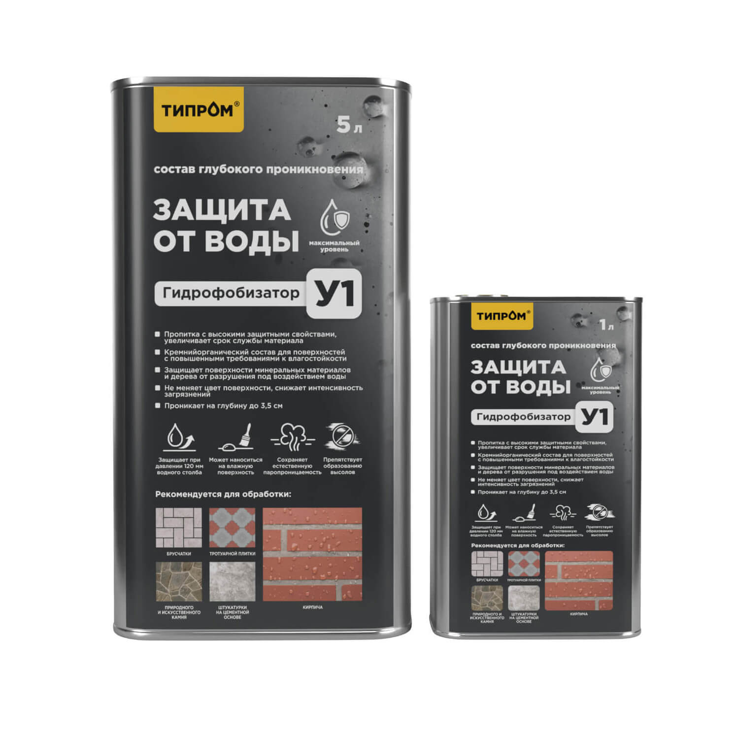 Для защиты керамического и силикатного кирпича рекомендуется использовать гидрофобизаторы Типром У, Типром У1, Типром К или Типром К Люкс, а также для усиления цвета - модификатор цвета Типром М с «мокрым эффектом» и гидрофобизирующим свойством.